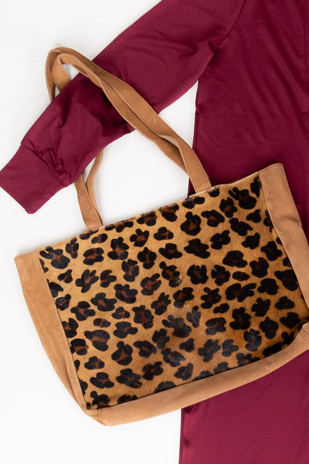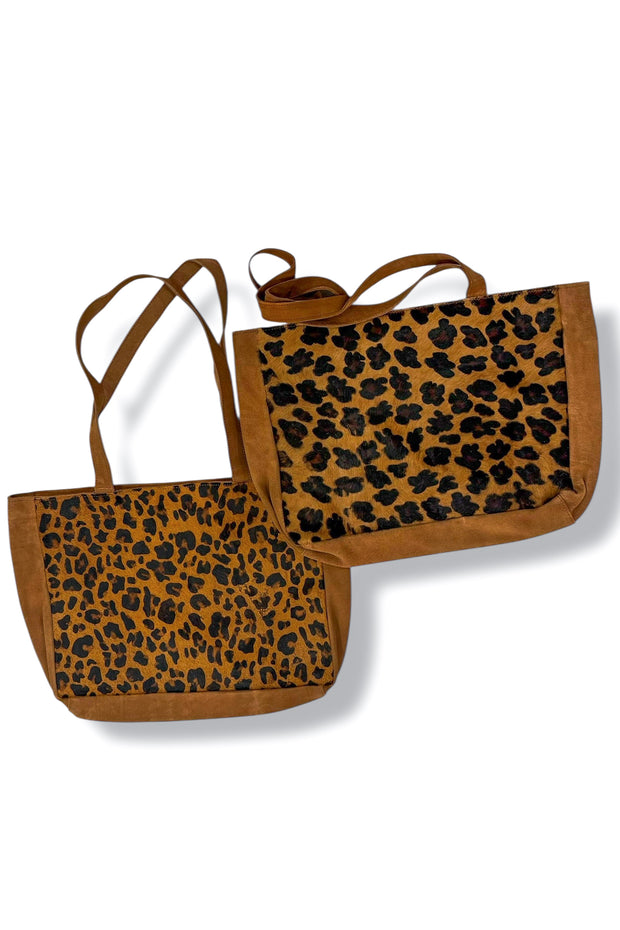 Bold leopard print tote featuring premium genuine leather and soft calf hair fur. An essential accessory that instantly elevates your wardrobe with luxurious texture and iconic animal print style.