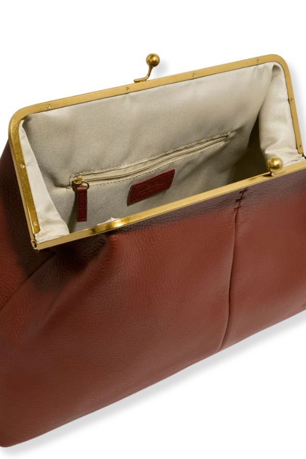 This clutch combines timeless sophistication with practical design. Crafted in iconic leather, this spacious clutch features a vintage-inspired metal frame and clasp closure, perfect for carrying all your essentials in style.