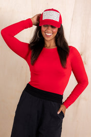 The A Way Home Ruby Red Long Sleeve Top offers a butter-soft feel with a round neckline for easy wear. Its breathable fabric ensures comfort throughout the day, making it a perfect choice for everyday layering.