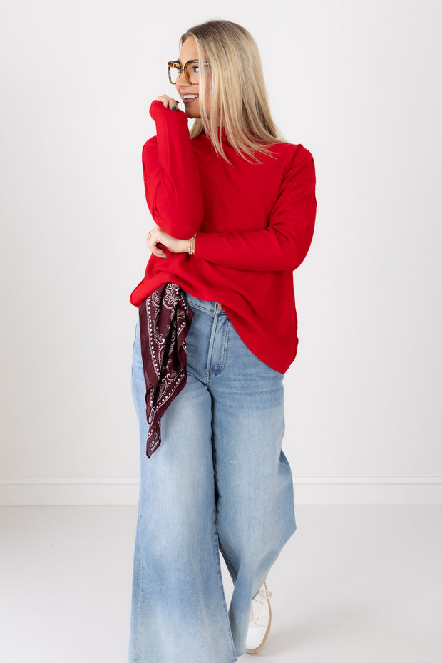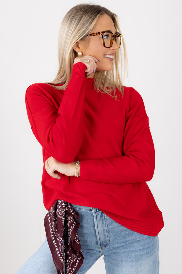 This Sweater features a comfortable mock neckline and long sleeves, perfect for cooler days. Its waist-length design offers a flattering fit, while the cozy sweater material keeps you warm and comfortable throughout the day.