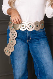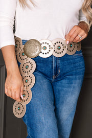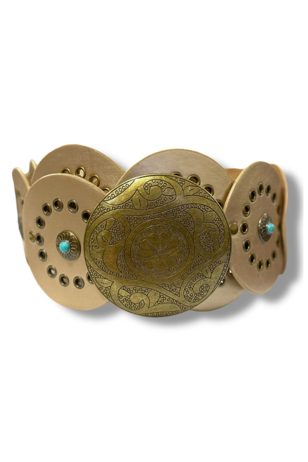 DOORBUSTER Way Out West Champagne Western Round Disc Belt