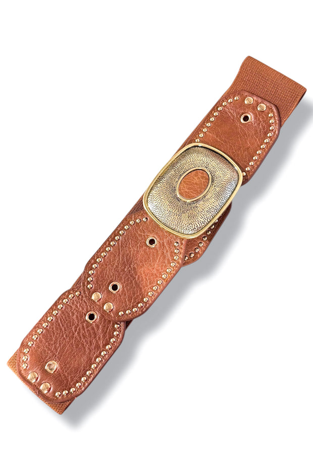 This stretch belt featuring bold western-inspired studs. Comfortable fit with eye-catching metallic accents that add attitude to any outfit. Perfect for dressing up jeans or casual wear.