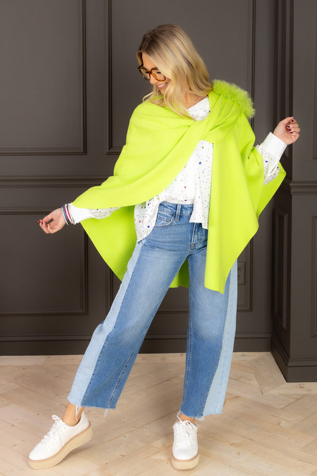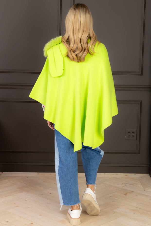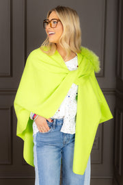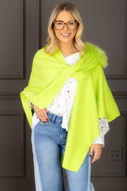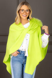 Stunning Lime poncho wrap crafted from soft, comfortable material. Features genuine fur loop detail for effortless styling and luxe appeal. Versatile layering piece that elevates any winter wardrobe with timeless elegance.