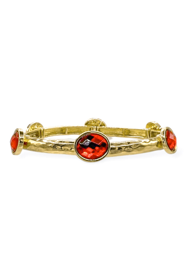 This elegant gold stretch bracelet features a stunning red pendants, adding a pop of color to any outfit. This bracelet is going to be a go to. Elevate your look with the Bright and Early Bracelet - Red.