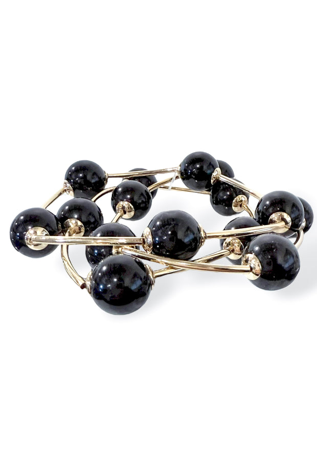 Sleek black ball and bar station bracelets. Minimalist design perfect for stacking or wearing solo. Versatile everyday piece that complements any style effortlessly.