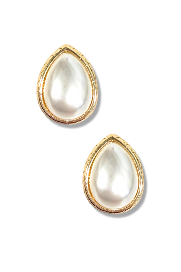 These earrings feature a delicate teardrop shape with a lustrous pearl center, offering a classic and elegant look. Lightweight and comfortable, they are perfect for everyday wear or special occasions.