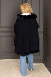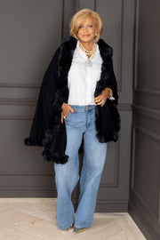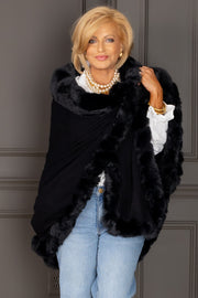 Luxe faux fur trim elevates this versatile poncho. One-size silhouette drapes effortlessly over any frame, perfect for layering through seasons.