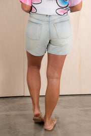 Crafted from light wash denim, these shorts feature side and front pockets for convenience, and a zip and button closure for a perfect fit.