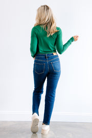 These Dear John Anika Moonlight Straight Leg Jeans feature a dark wash and a straight leg cut for a classic look. They include a zip and button closure along with front and back pockets, combining style with practical details for everyday wear.
