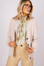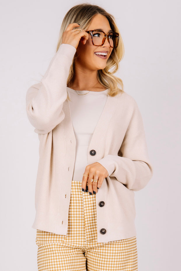 This Cardigan offers a sleek and stylish look with its button down front and long sleeves. Made with a thinner material, it's perfect for layering and staying comfortable all day long.