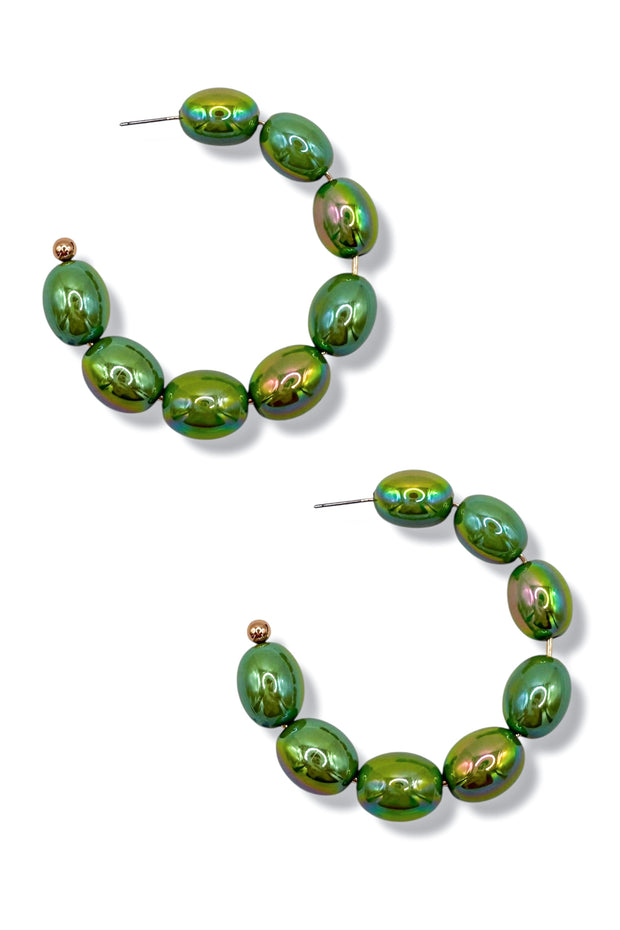 The Don't Stop The Fun Hoop will add a pop of color to all your looks. The is an acrylic bead hoop that is super lightweight. Add some fun with these!