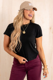 This Short Sleeve Tee features a rounded neckline and short sleeves for a comfortable, classic fit. Its waist-length design makes it easy to style for everyday wear.