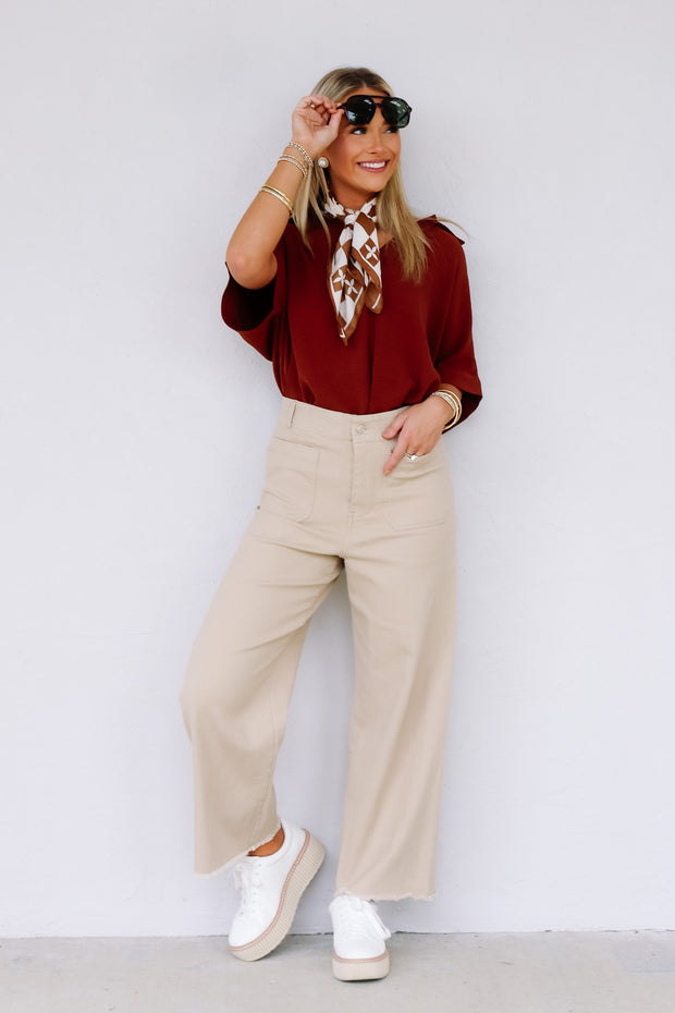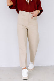 These Pants offers a front zip button closure for a secure fit. Its straight leg silhouette provides a timeless look, while the distressed hem line adds a touch of casual style.