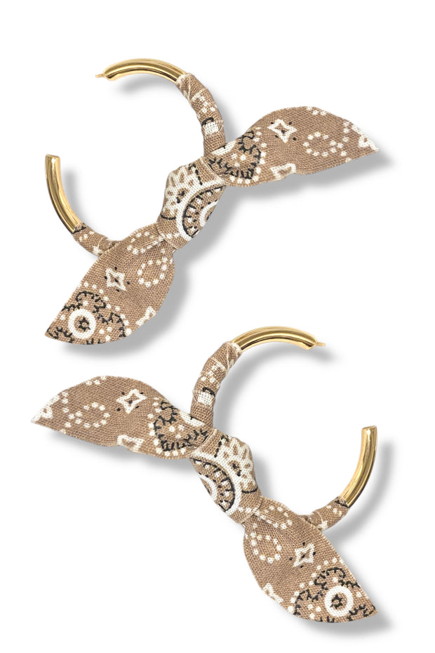 DOORBUSTER Here For A Time Brown Bandana Hoop Earrings