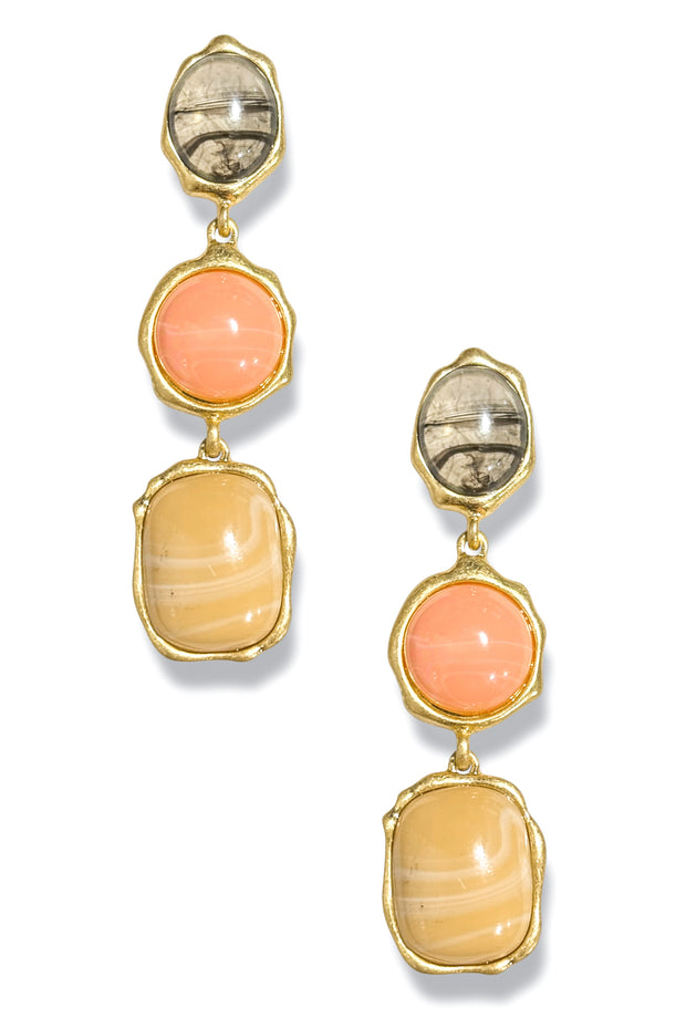 These multicolor stone drop earrings make a bold statement with their vibrant colors. Perfect for adding a lively touch to any outfit, they bring both style and personality to your look.
