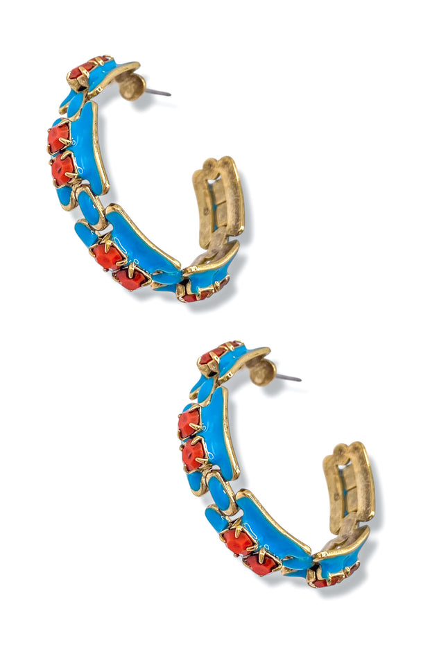 TOVA Hillary Coral Turquoise Hoop Earrings