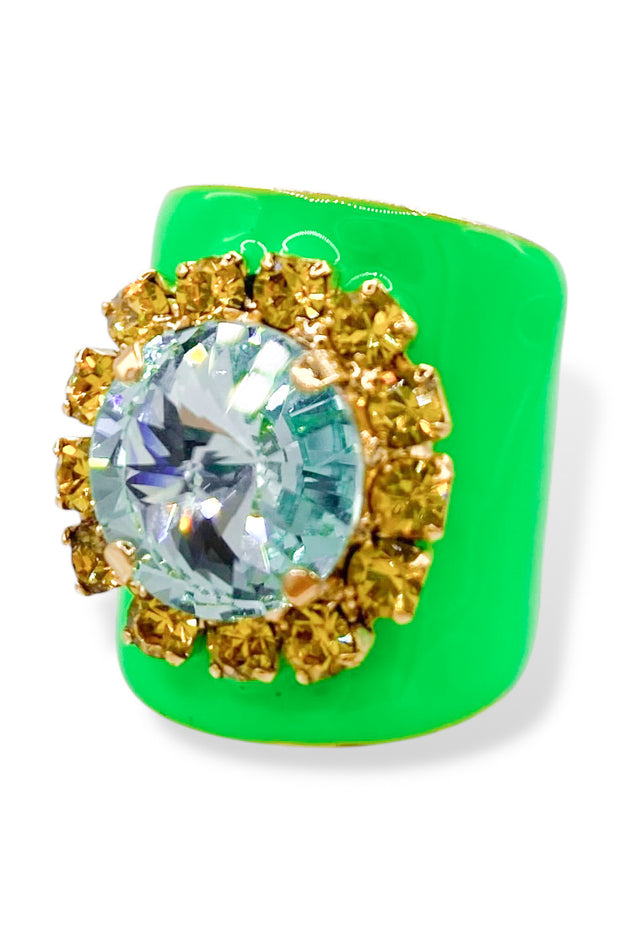 This Jacci Ring is the perfect accessory for any occasion! The enamel on the ring makes this ring POP. And with its adjustable ring size, it's suitable for everyone. Enjoy a 12mm-sized stone and Canadian craftsmanship for a charming, luxurious look!