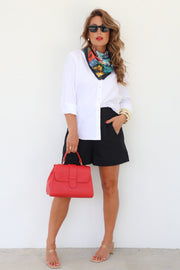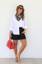 Introducing the Megan Blouse, a must-have addition to your wardrobe. This expertly designed blouse features a top collar and button down front for a sophisticated look. The long sleeves and oversized fit provide both comfort and style. Perfect for any occasion, this blouse is a versatile choice for any fashion-forward individual.