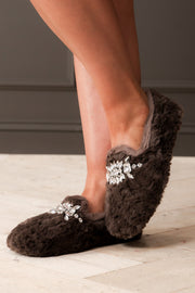 Lounge in luxury with these rhinestone-encrusted fuzzy loafer slippers.  Pair with cozy knit socks and your favorite PJ set for a night-in moment. Removable insocks can be washed and replaced to keep your feet fresh and shoes in tip-top condition for endless wear.