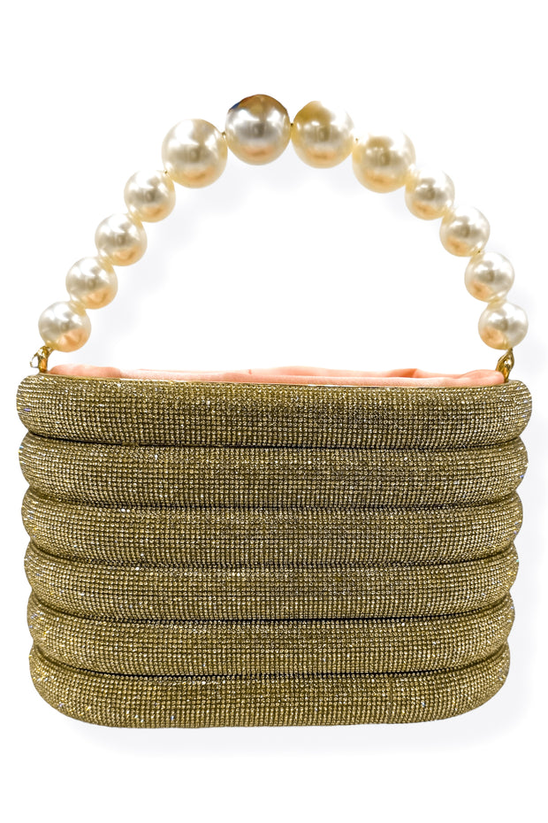 Elevate your style with this elegant bag featuring intricate crystal detailing and a timeless pearl handle. Indulge in luxury and make a statement with this chic and sophisticated accessory. Perfect for any occasion, add a touch of glamour to your outfit with this stunning bag.