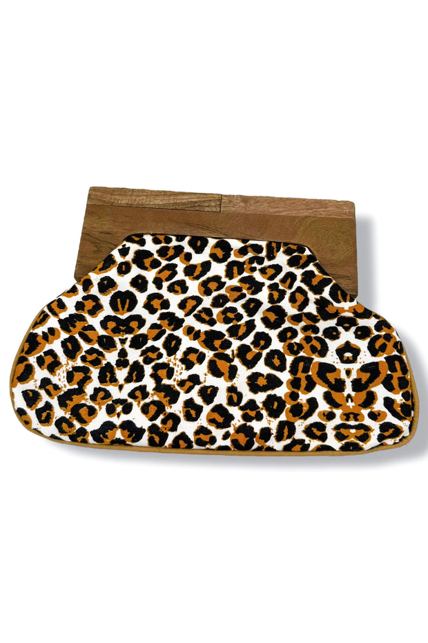 This sleek, leopard print clutch features a durable wood frame that adds a touch of sophistication. Make a statement at any event and keep all your essentials secure in this trendy piece.