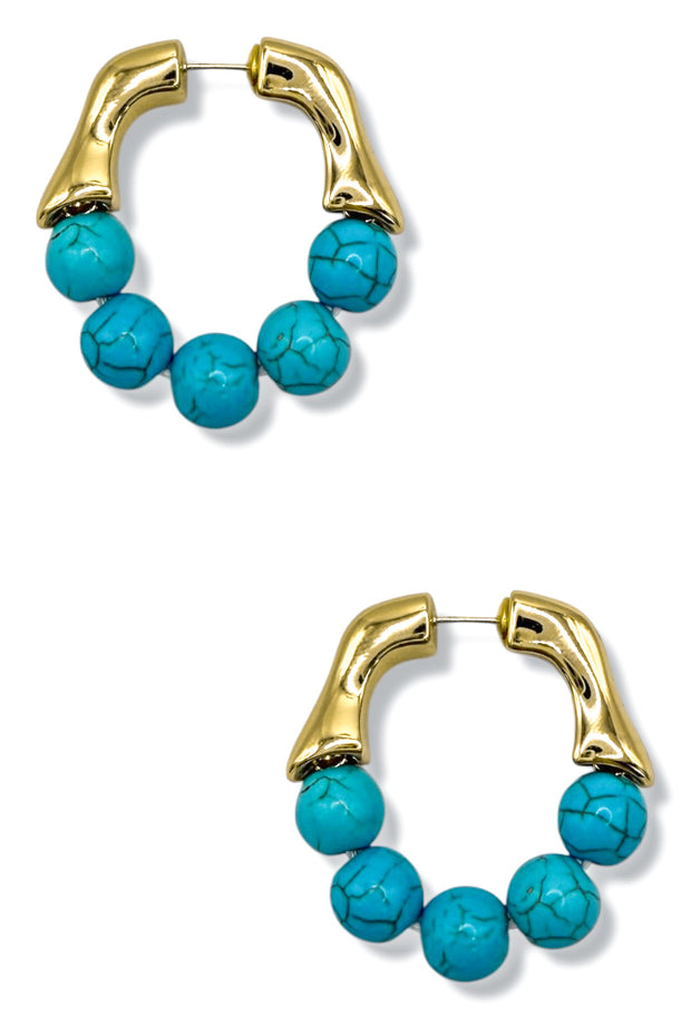 Featuring a gold hoop design with intricate half beaded detailing. Elevate your style with these stunning earrings that offer a unique blend of glamour and sophistication. The perfect accessory for any outfit, these earrings add a touch of elegance to your look.