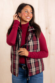 Take it All Burgundy Plaid Zip Up Puffer Vest Top $40.00