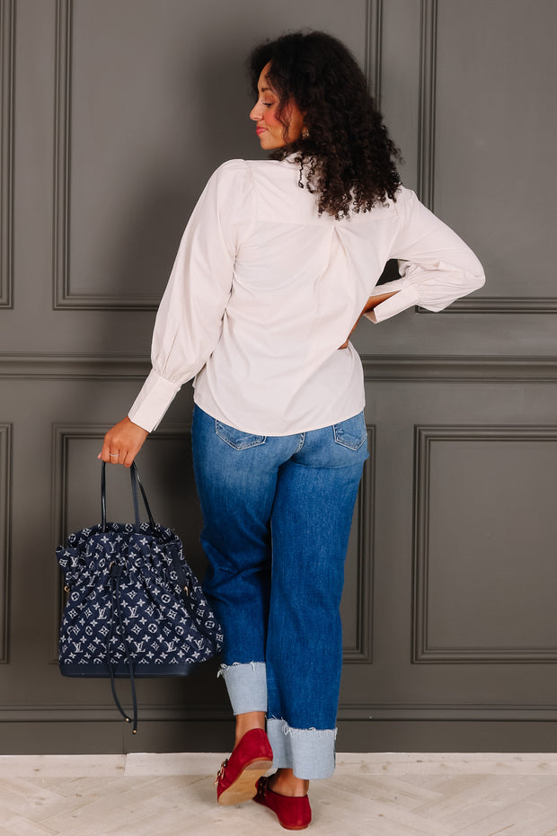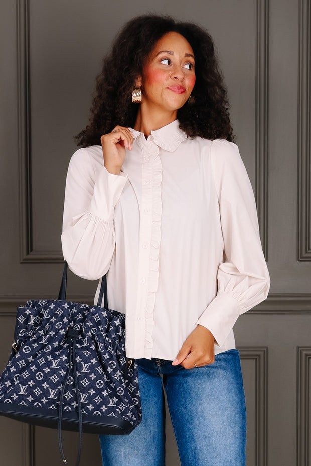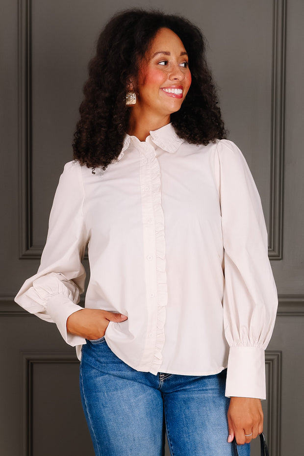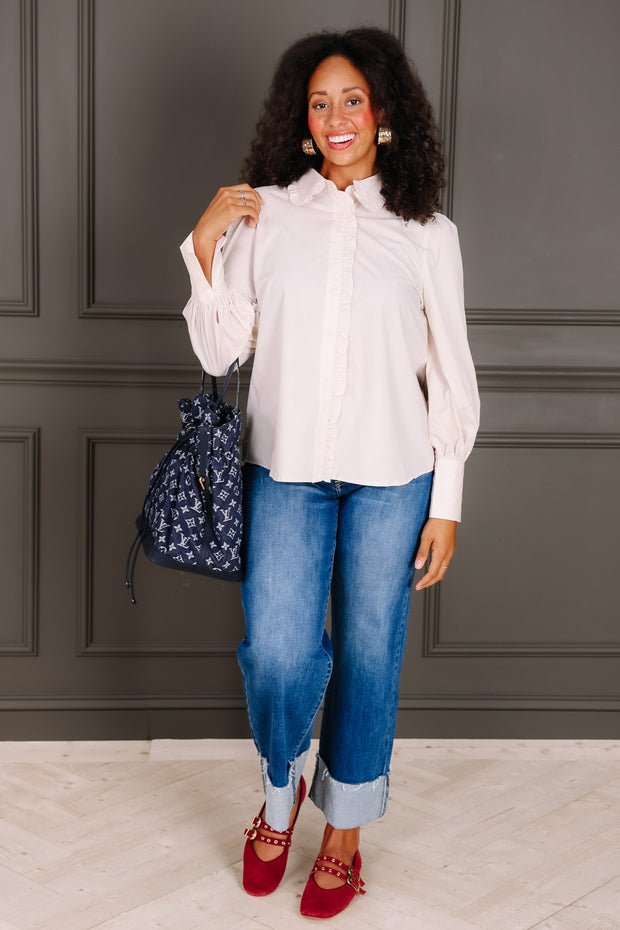 This Blouse features long sleeves and a button-down front for easy wear. Its classic top collar and waist-length cut offer a timeless silhouette that pairs well with both casual and dressy outfits.