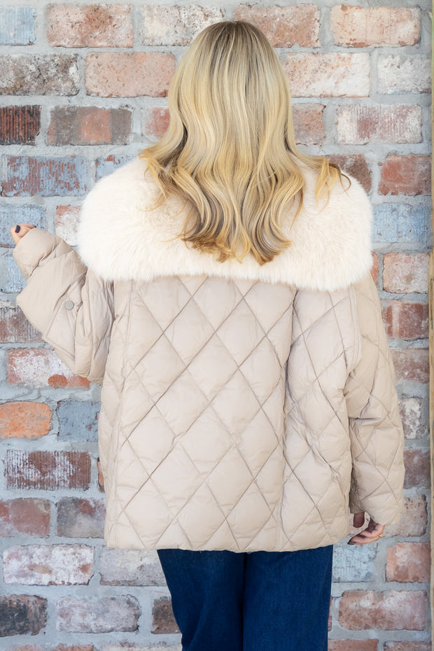 Expertly crafted for cooler temperatures, our Fox Fur Quilted Jacket features fox fur detailing and a quilted material for added warmth. With front pockets and a tie closure, this jacket is both functional and stylish. Brave the cold in style with this must-have piece.