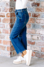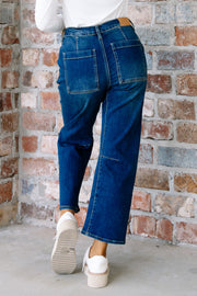 The Dear John Denali Lasso Barrel Jean features a dark wash and high-waisted fit for a flattering silhouette. With zip and button closure, front and back pockets, and a comfortable fit, these jeans are perfect for everyday wear.