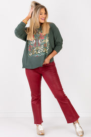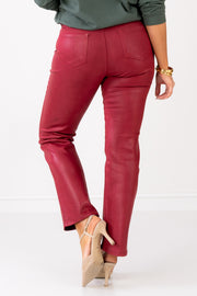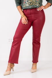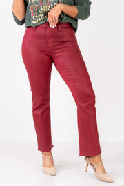 Just Black Slim Cropped Coated Burgundy Bootcut Jean