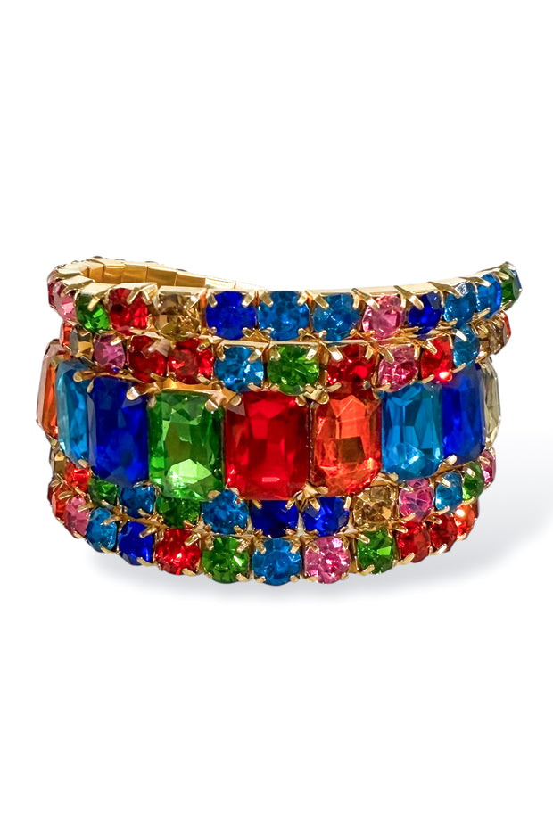 Each bracelet features an emerald cut round stone and stretch design, perfect for elegant evening wear. Elevate your style with these pieces that will make you feel like a true fashion icon.