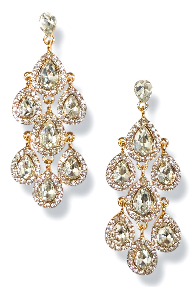 Elegant teardrop stone clusters catch light beautifully, creating a sophisticated dangle that frames the face. Perfect for evening events and special occasions.