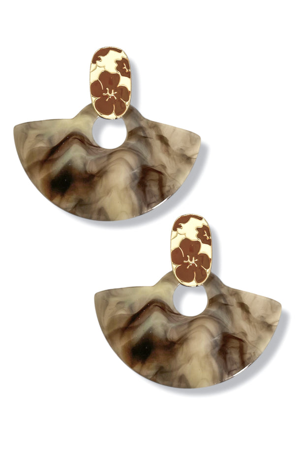 These earrings feature delicate enamel flowers paired with elegant fan-shaped links. Lightweight and easy to wear, they add a subtle touch of charm to any outfit, perfect for everyday wear or special occasions.