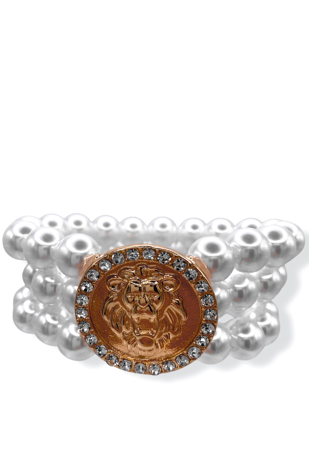 DOORBUSTER Top Of The Line Lion Medallion Pearl Bracelet
