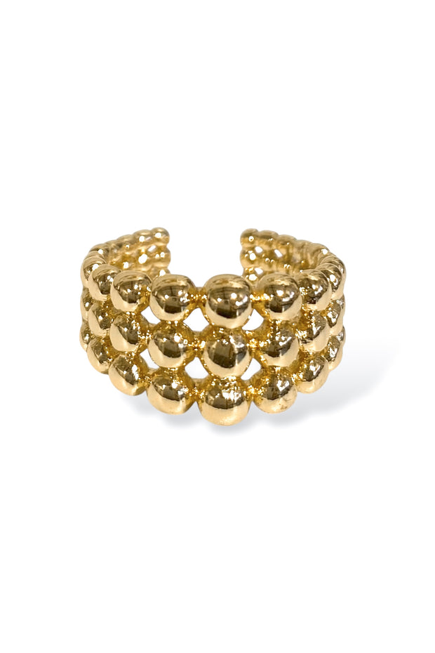 This gold beaded layered ring features an adjustable design for a comfortable fit. Its delicate beads and layered style add subtle elegance, making it perfect for everyday wear or special occasions.
