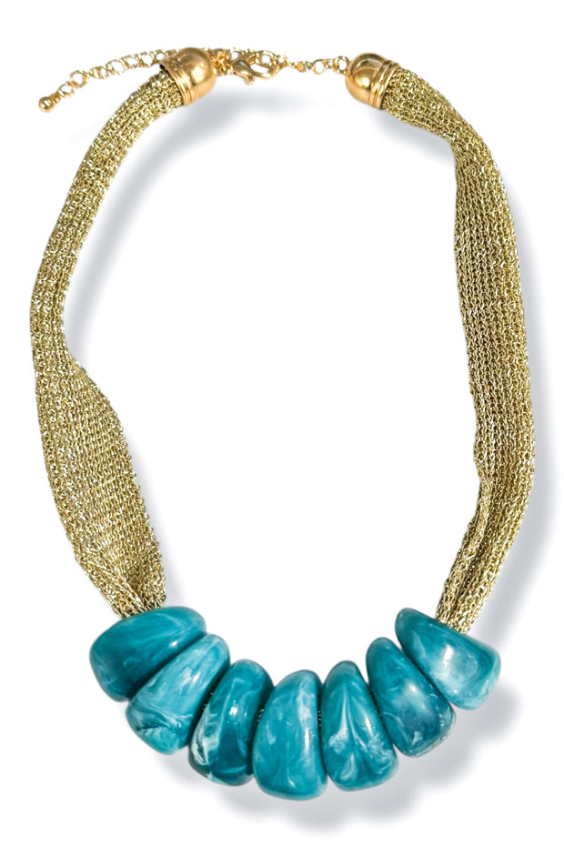 This sleek trapezoid-shaped necklace adds a unique touch to any outfit. Featuring a stylish bead mesh chain, it's a versatile piece that can be dressed up or down.