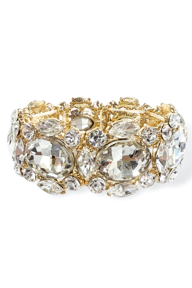 Elegant stretch bracelet featuring oval stone accents that catch the light beautifully. Perfect for evening wear, this statement piece adds sophisticated sparkle to any formal outfit.