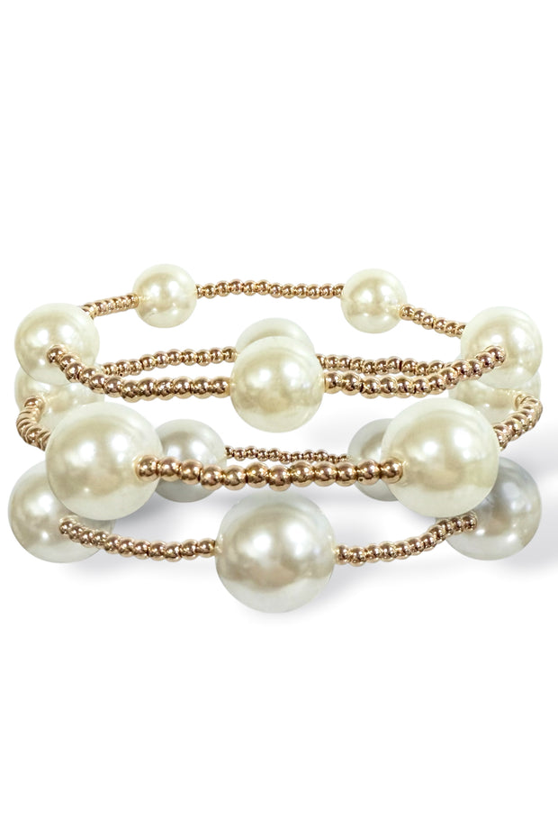 Elegant pearl and gold beaded bracelets perfect for layering or wearing solo. Timeless sophistication in every strand.