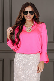 This hot pink long sleeve top features a V neckline and a stylish collar, made from breathable and comfortable material for all-day wear. It’s a vibrant and cozy addition to your wardrobe.