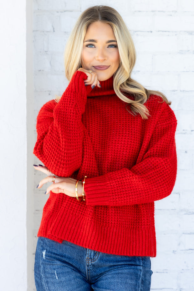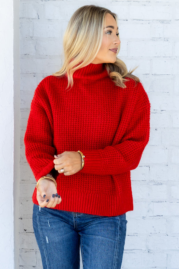 This sweater features a cozy turtle neckline and long sleeves, perfect for cooler days. Made from soft knitted material, it offers comfortable wear and a flattering waist-length fit.