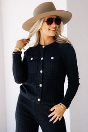 This Cardigan features a rounded neckline and a button-down front for easy wear. Made from cozy waffle-knit fabric, it offers warmth without bulk. The waist-length cut with long sleeves provides a comfortable, flattering fit perfect for layering.