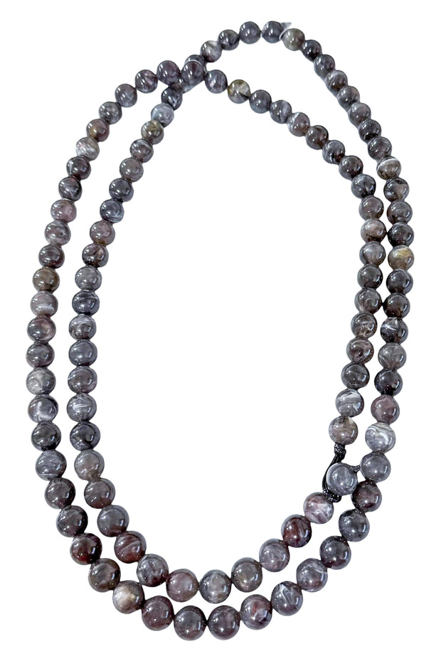 Elevate your style with this marble Beaded Long Necklace. Its polished marble beads add natural elegance, perfect for layering or a striking standalone accessory.