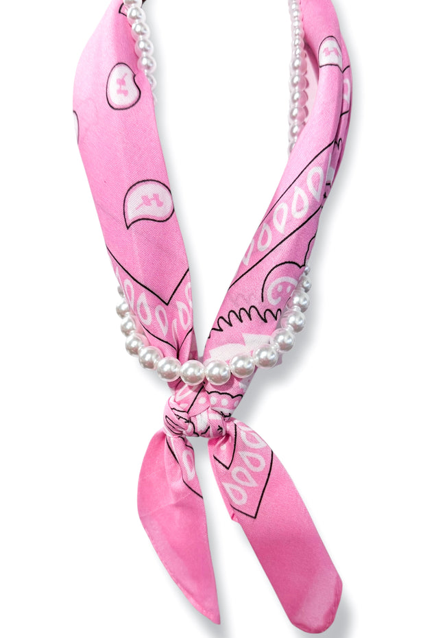 This red bandana pearl necklace combines bold style with classic charm, perfect for adding a unique touch to any outfit. Lightweight and versatile, it keeps you looking effortlessly chic all day.