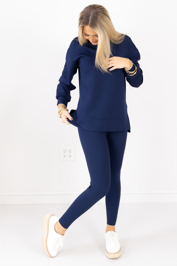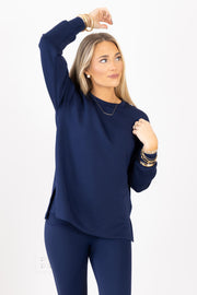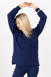 Spanx Airessentials Timeless Navy Crew Neck Long Sleeve Top