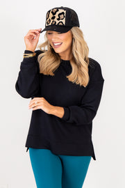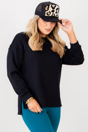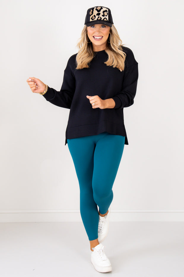 This Top features a comfortable rounded neckline and long sleeves for everyday wear. Its longer length and side slits offer a flattering fit with extra ease of movement, making it a versatile addition to your wardrobe.