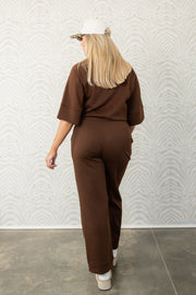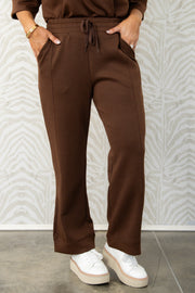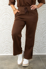 This Scuba Brown Wide Leg Pant features an elastic pull-on waistband for comfort, side pockets for convenience, and a flattering wide-leg silhouette for effortless style.