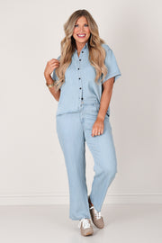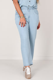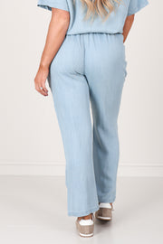 This Pant features a high waistband for a comfortable fit and side pockets for added convenience. Crafted from durable denim, these pants offer a stylish wide leg bottom that moves with you, perfect for everyday wear.