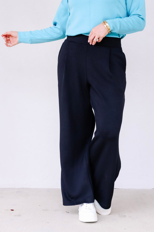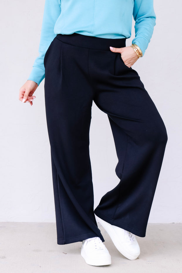Elevate your look with these flowy wide-leg pants, expertly crafted from Techno Lux material for a blend of luxurious softness and four-way stretch. The extremely comfortable pull-on waistband ensures a smooth, relaxed silhouette, making them perfect for effortless style and comfort.