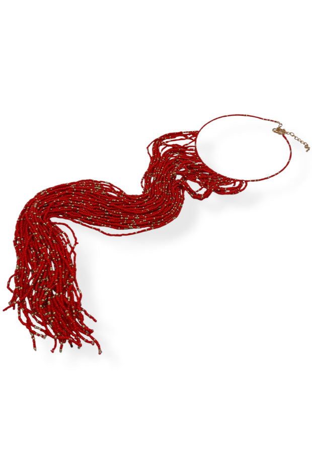 Over My Head Red Seed Beaded Necklace